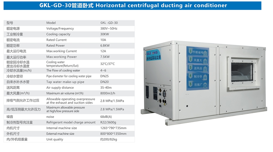 GKL-GD-30管道卧式蒸发冷高效空调机组
